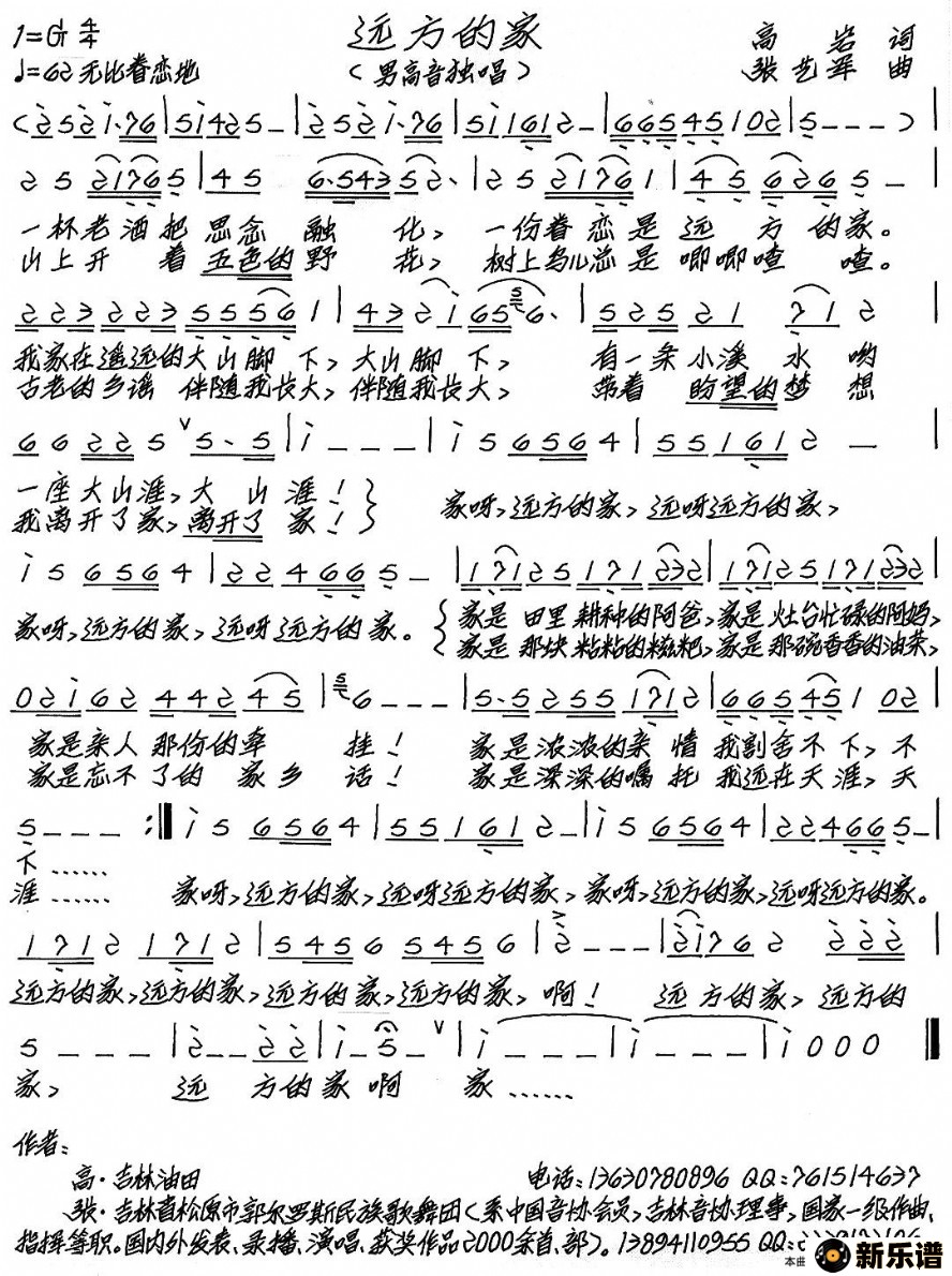 演唱的远方的家歌词,远方的家最新曲谱.