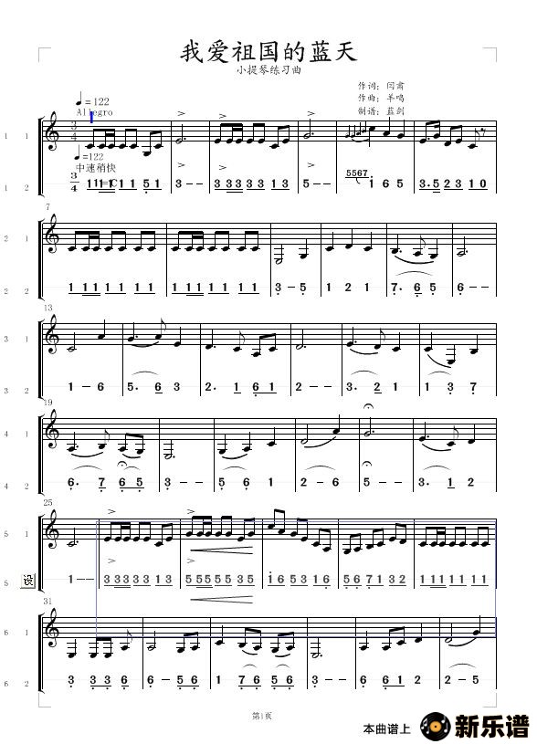 演唱的我爱祖国的蓝天歌词,我爱祖国的蓝天最新曲谱.