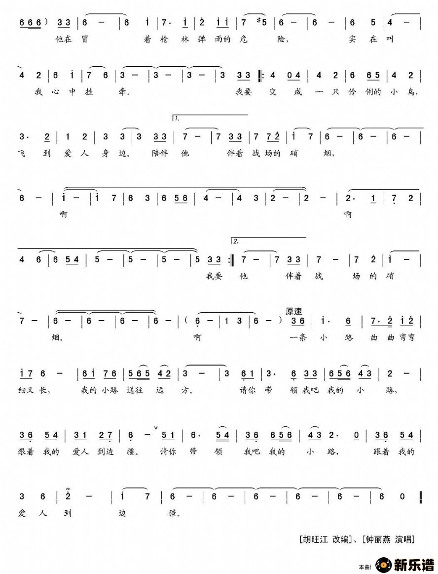 《小路》最新曲谱 钟丽燕
