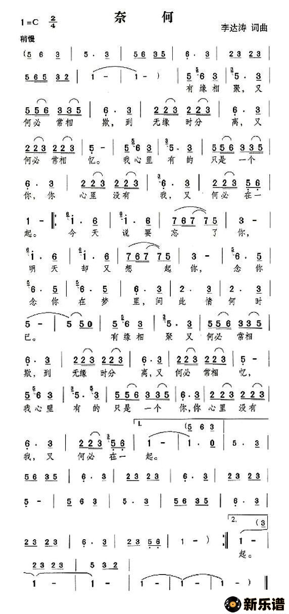 > 奈何最新曲谱