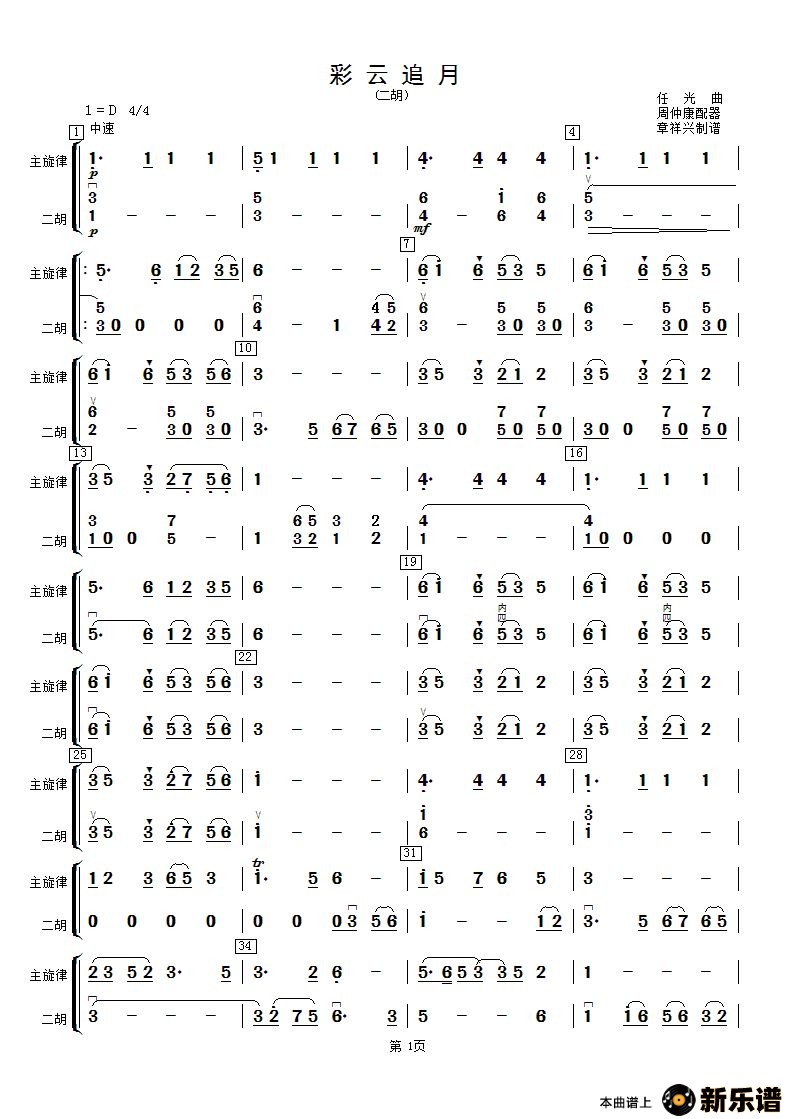 演唱的彩云追月歌词,彩云追月最新曲谱.