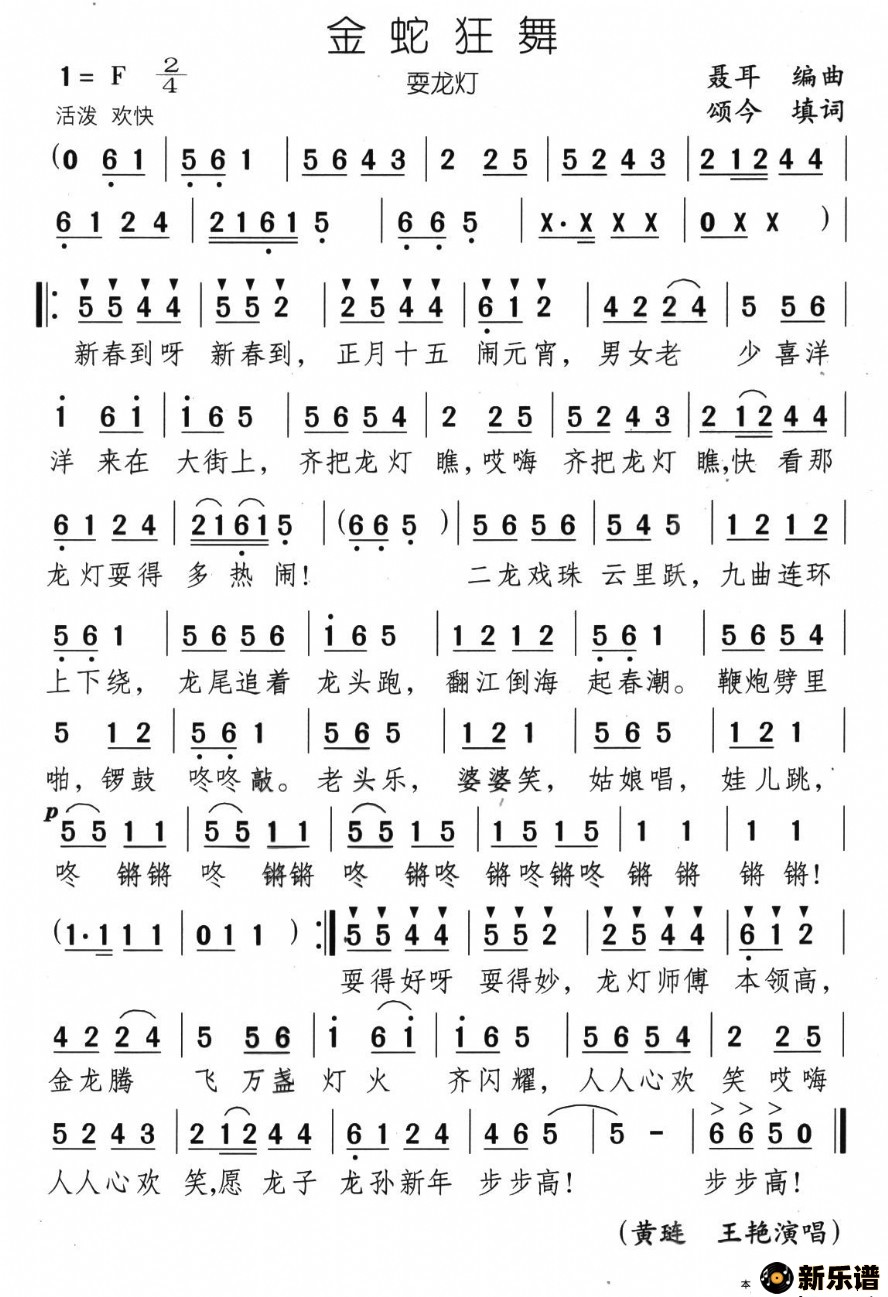 演唱的金蛇狂舞歌词,金蛇狂舞最新曲谱.