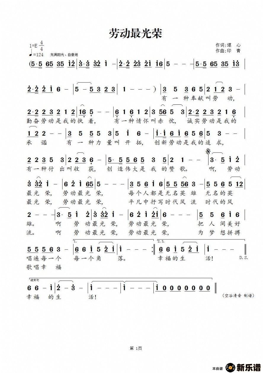 劳动最光荣最新曲谱
