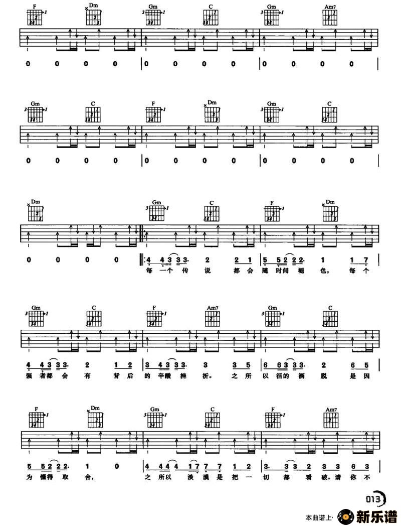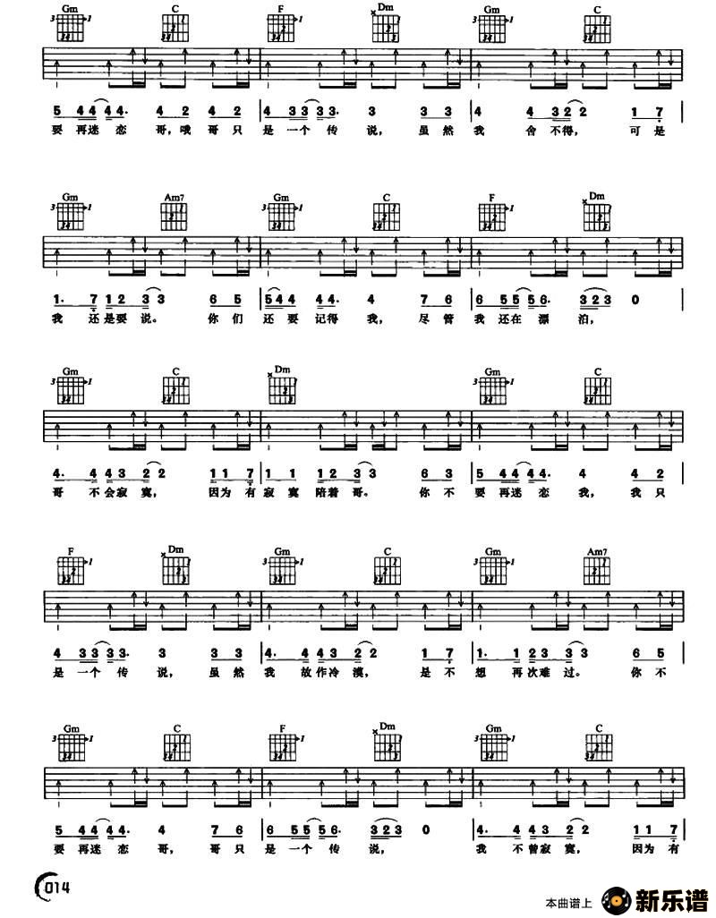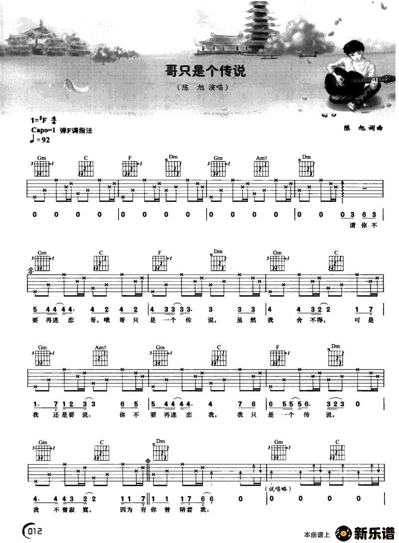 《哥只是个传说》最新曲谱 陈旭