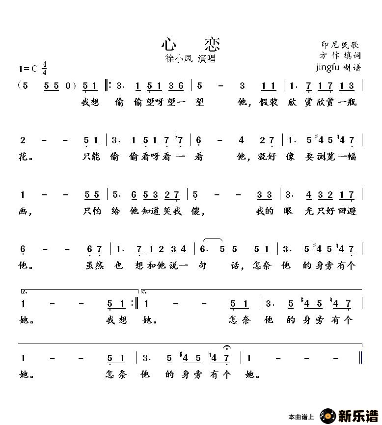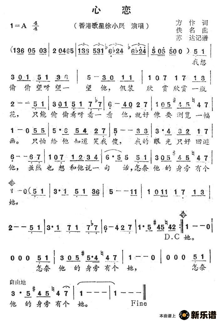徐小凤演唱的心恋歌词,心恋最新曲谱.