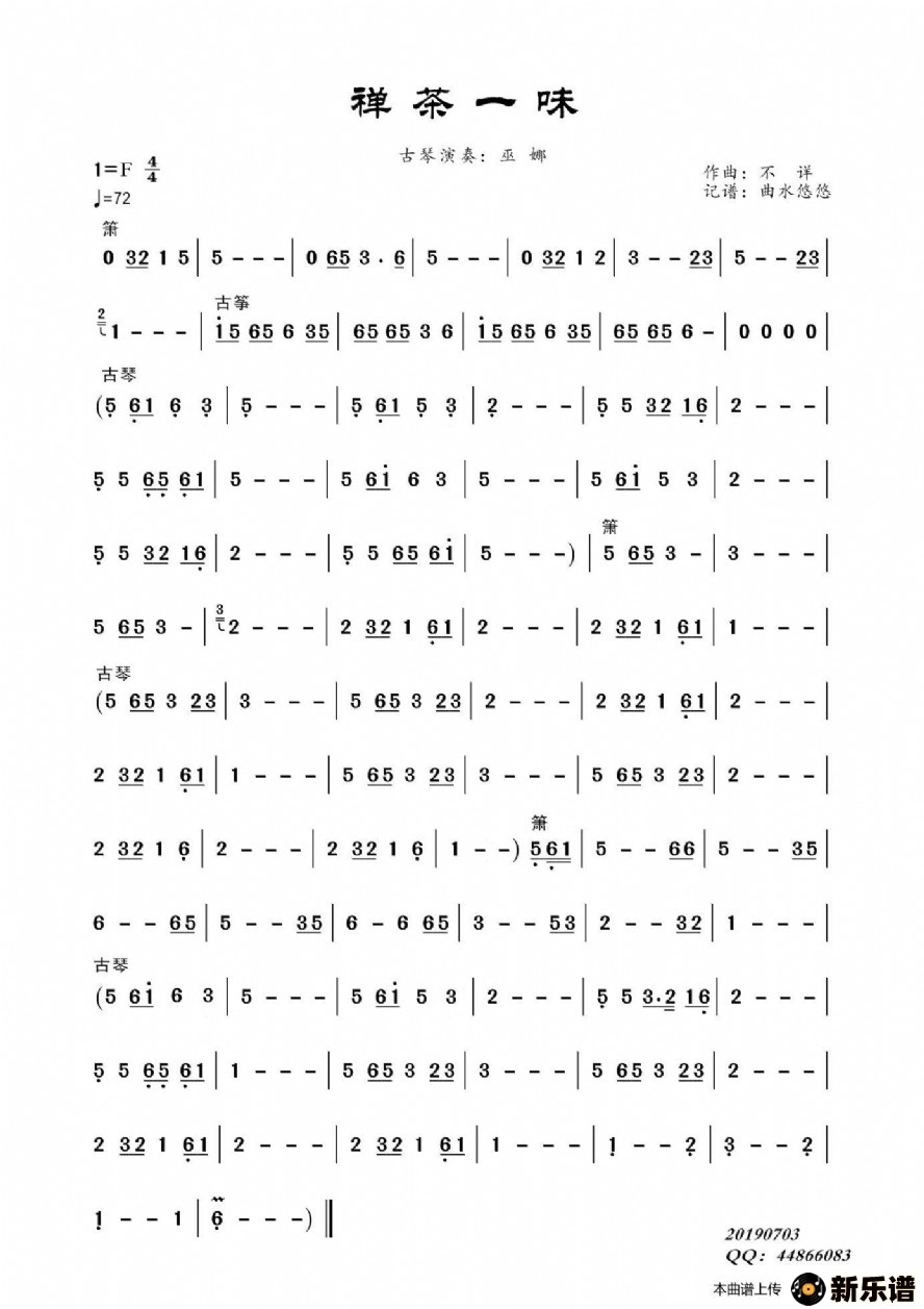 《禅茶一味》最新曲谱 巫娜-曲水悠悠制谱