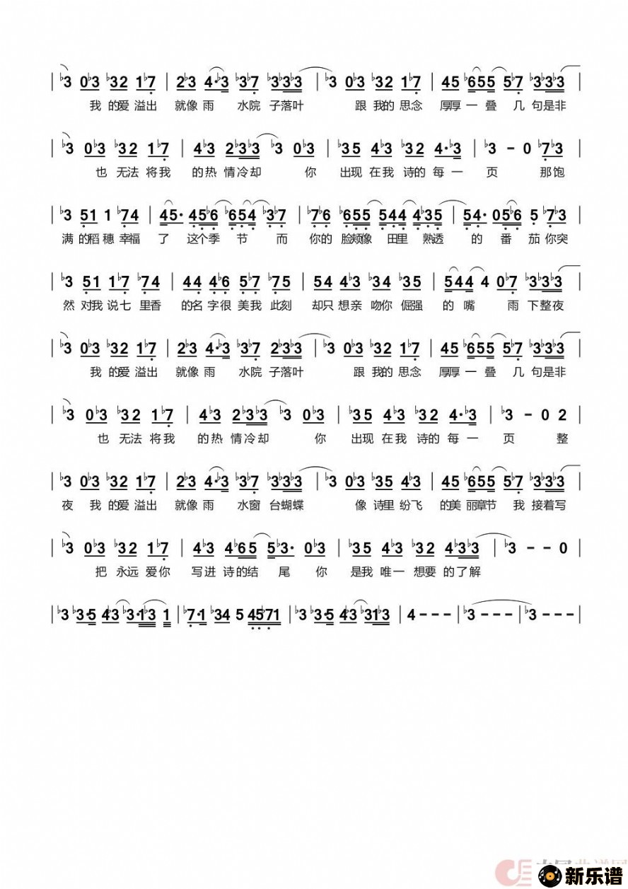 周杰伦演唱的七里香 c调转调歌词,七里香 c调转调最新曲谱.