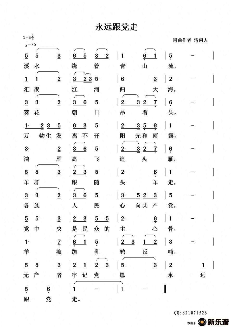 永远跟党走最新曲谱