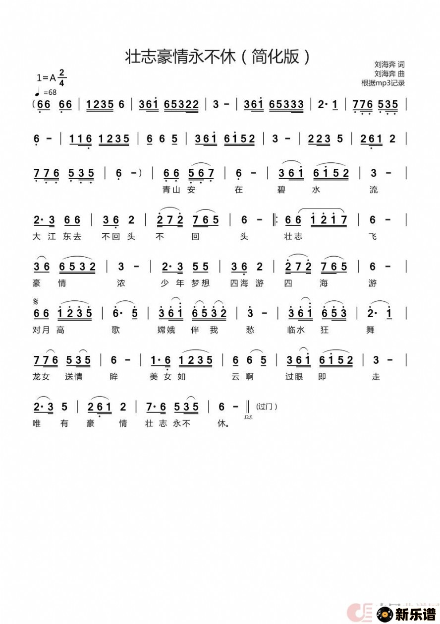 路童演唱的壮志豪情永不休歌词,壮志豪情永不休最新曲谱.