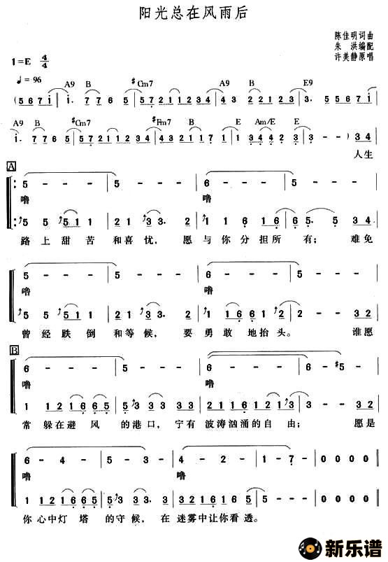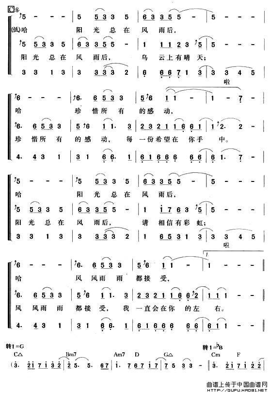演唱的阳光总在风雨后歌词,阳光总在风雨后最新曲谱.