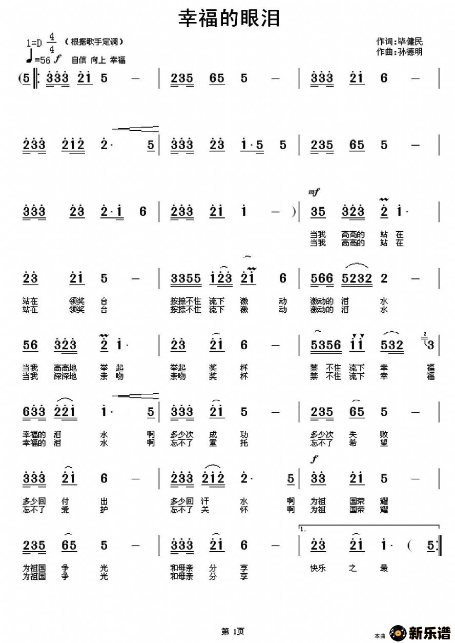 王爱华演唱的幸福的眼泪歌词,幸福的眼泪最新曲谱.