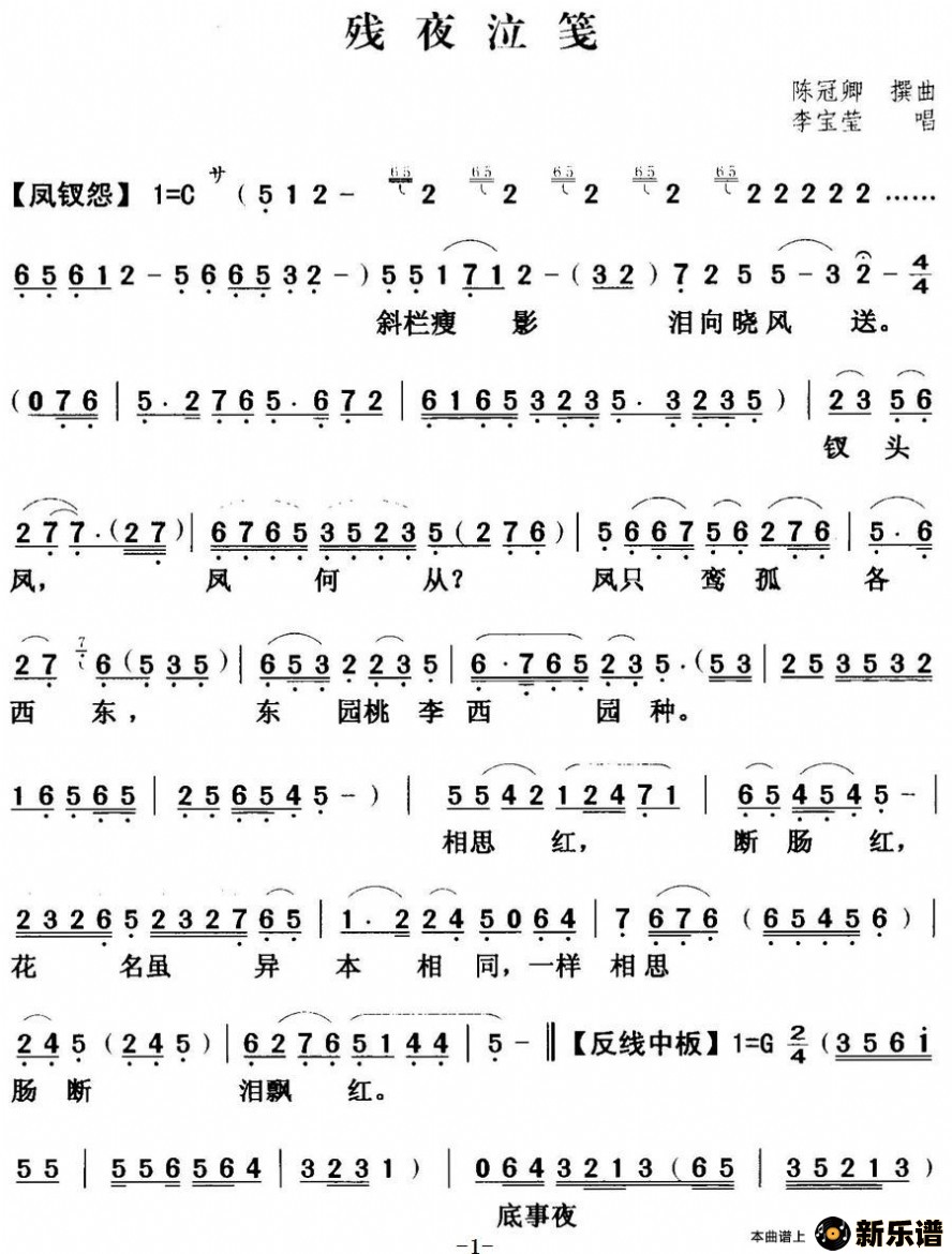 《【粤曲】残夜泣笺 》最新曲谱 李宝莹