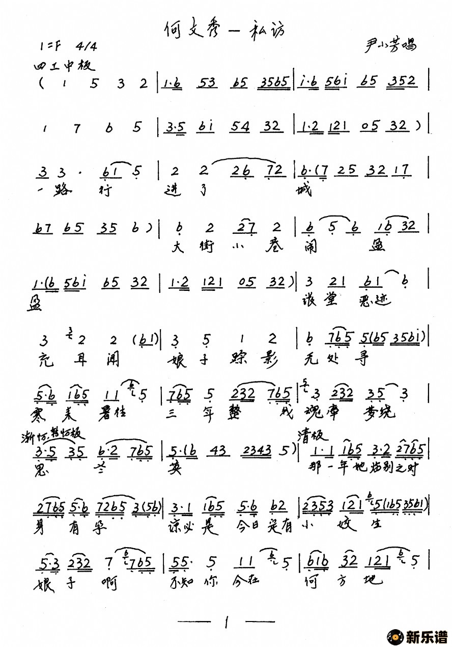 尹小芳演唱的私访歌词,私访最新曲谱.