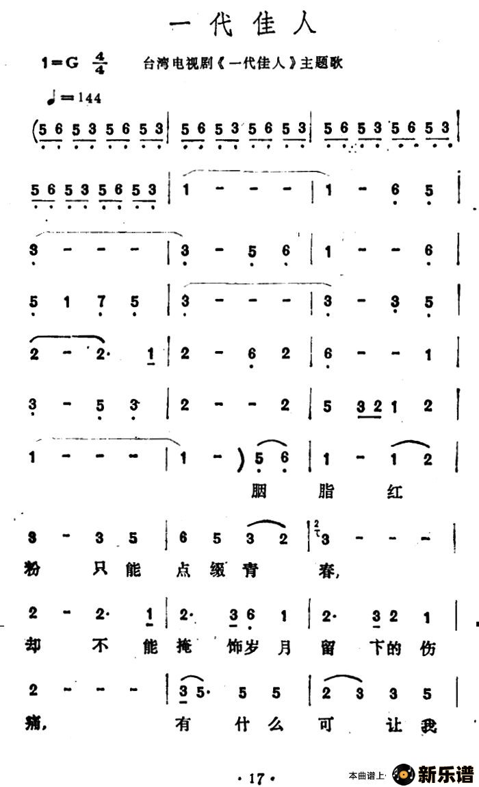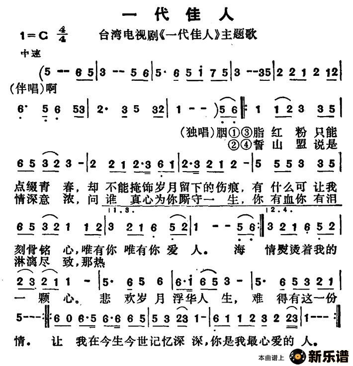 一代佳人(台湾电视剧《一代佳人》主题歌)汤兰花 汤兰花演唱的一代佳人(台湾电视剧《一代佳人》主题歌)歌词,一代佳人(台湾电视剧《一代佳人》主题歌)最新曲谱. 版本一版本二:选自《甜歌巨星:李玲玉专辑》。