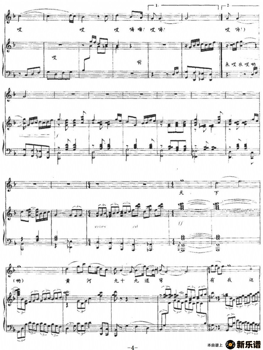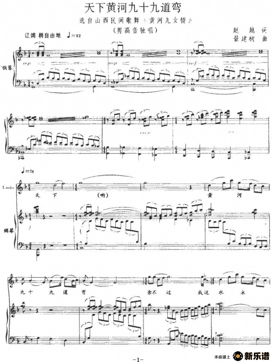 演唱的天下黄河九十九道弯歌词,天下黄河九十九道弯最新曲谱.