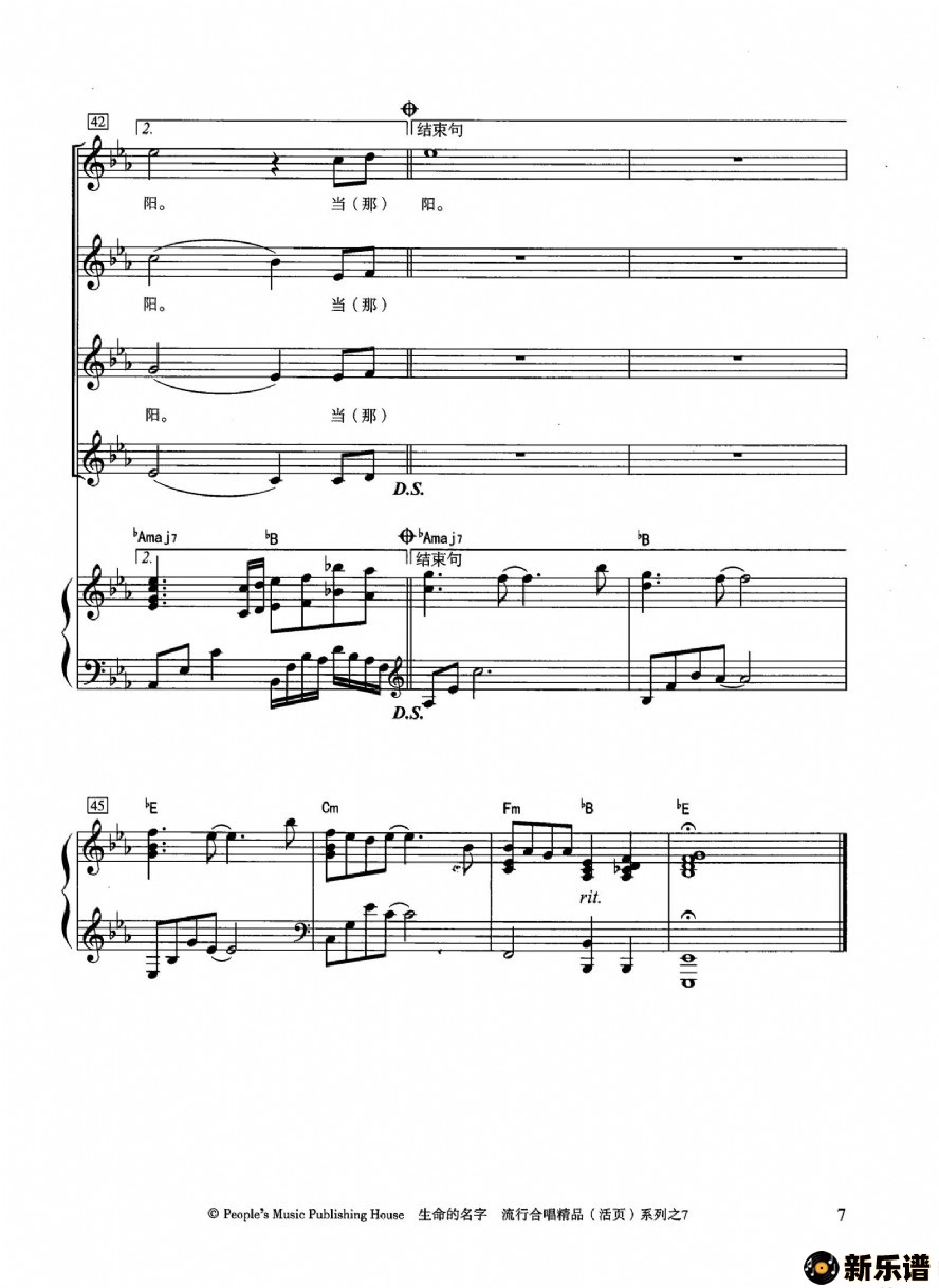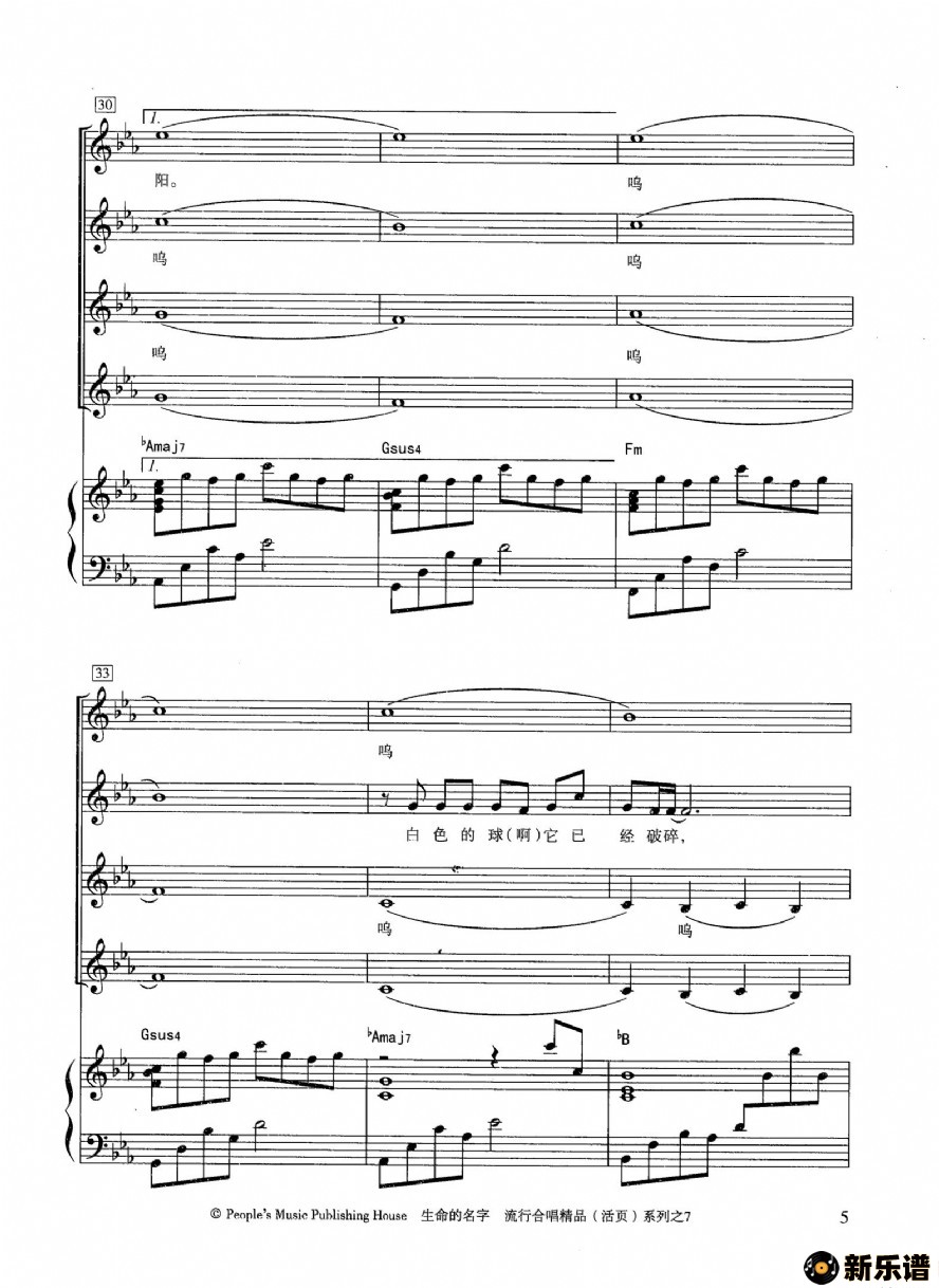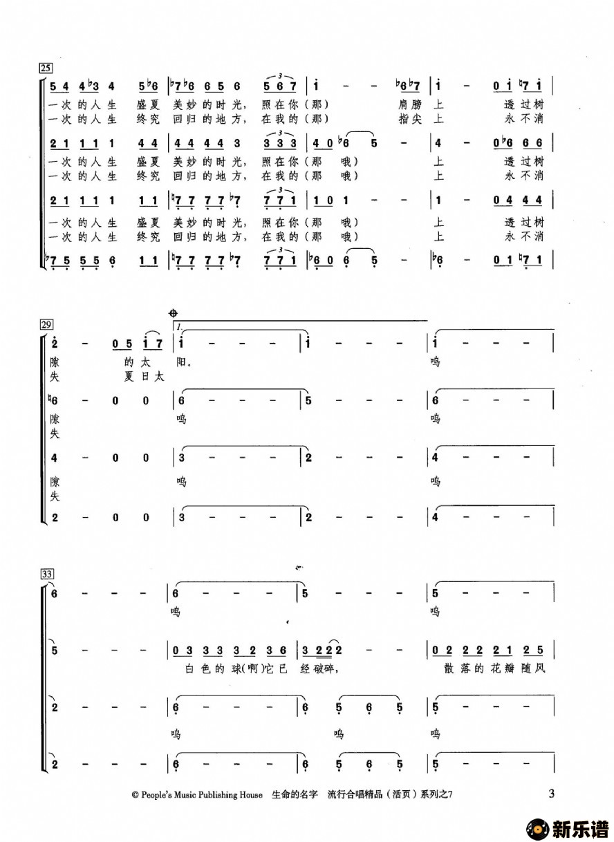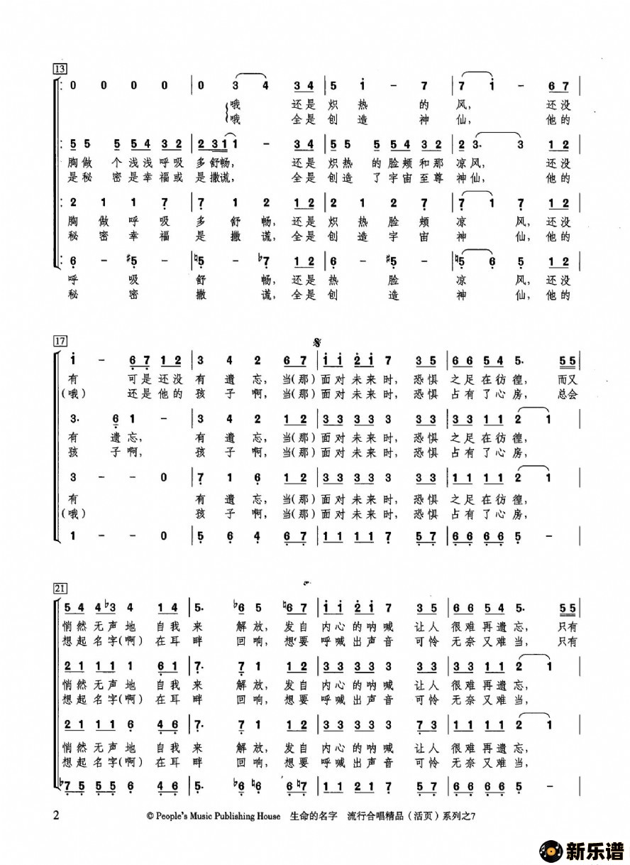 《生命的名字(千与千寻插曲)》最新曲谱 女生和唱
