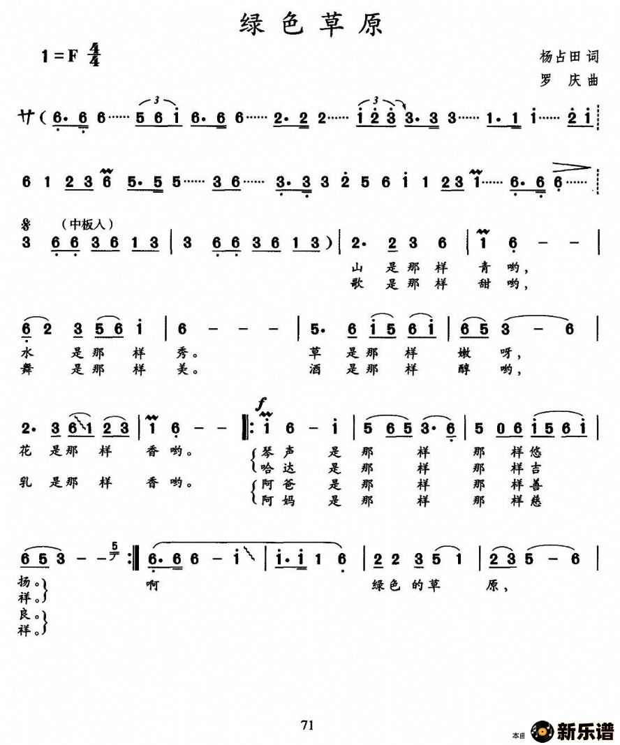 演唱的绿色草原歌词,绿色草原最新曲谱.