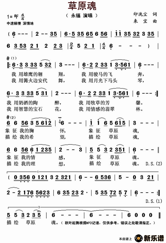 来宝演唱的草原魂歌词,草原魂最新曲谱.