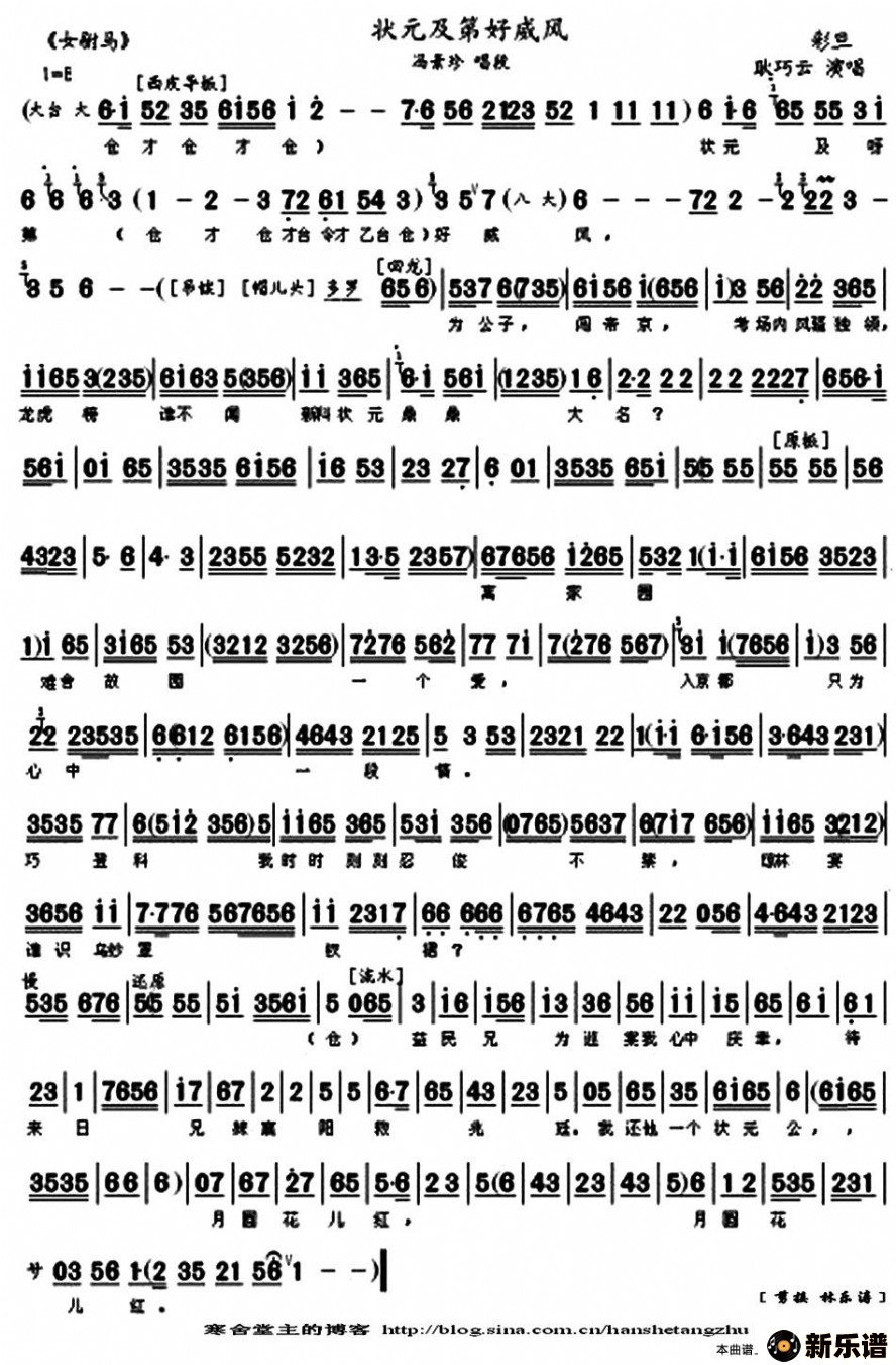 耿巧云演唱的状元及第好威风歌词,状元及第好威风最新曲谱.