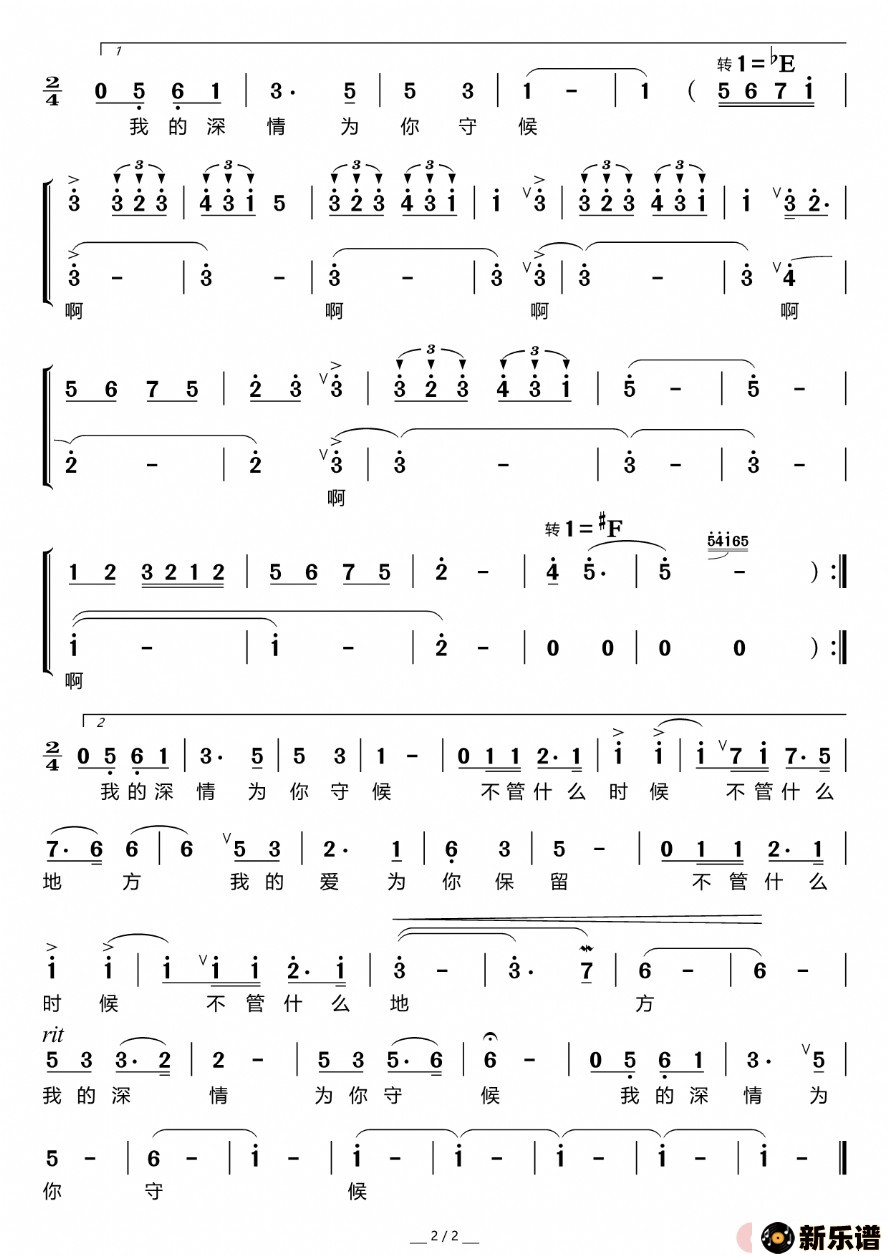 《我的深情为你守候》最新曲谱 王佳佳-心之歌制谱