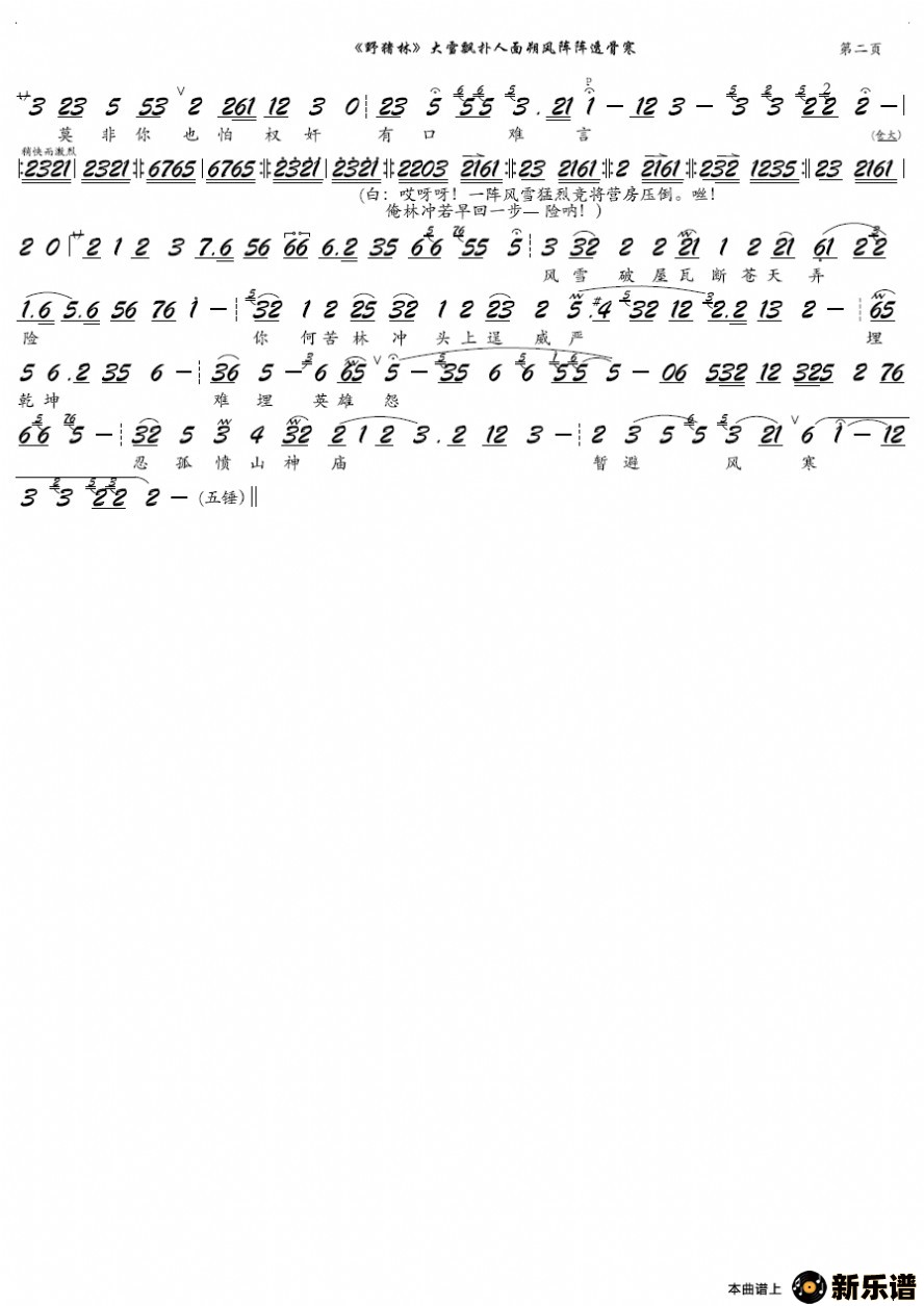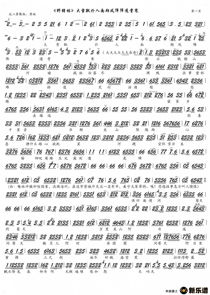 演唱的《野猪林》大雪飘扑人面歌词,《野猪林》大雪飘扑人面最新曲谱.