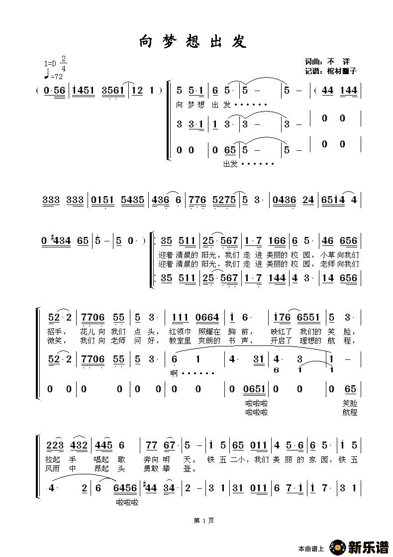 不详演唱的向梦想出发歌词,向梦想出发最新曲谱.