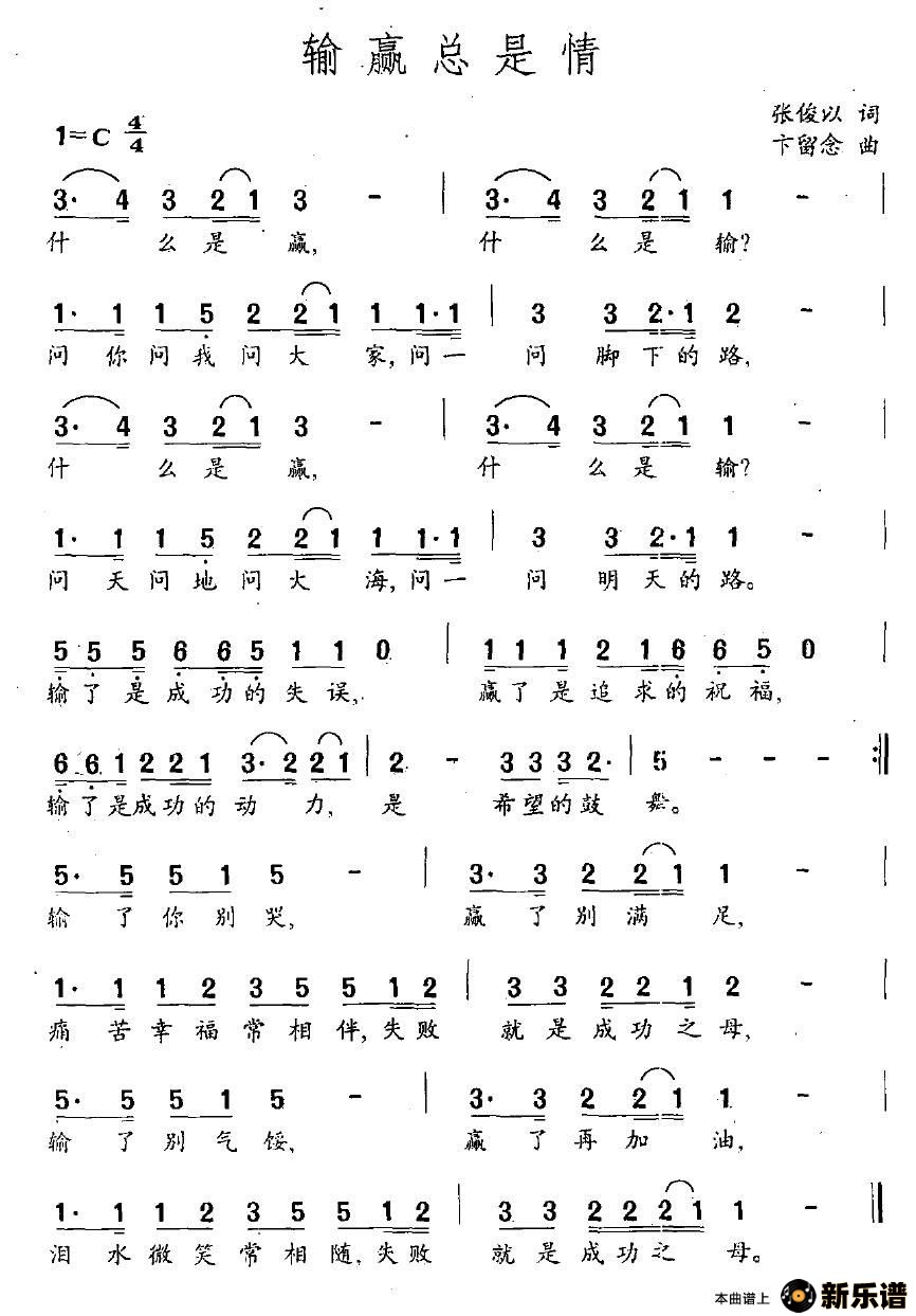 演唱的输赢总是情歌词,输赢总是情最新曲谱.