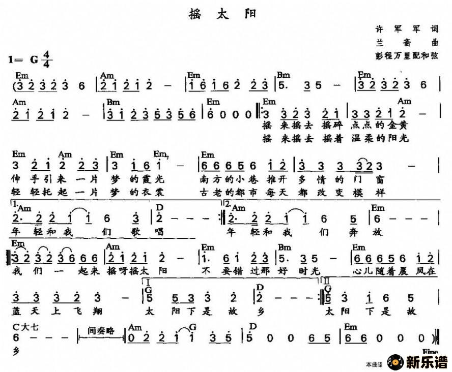 《摇太阳》最新曲谱