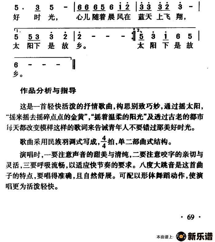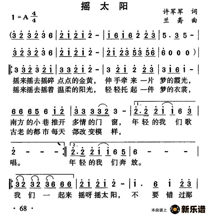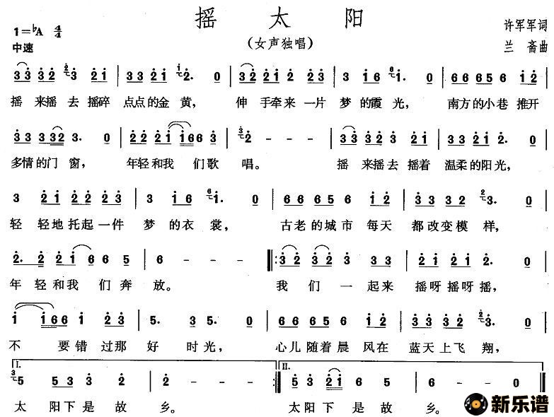 方芳演唱的摇太阳歌词,摇太阳最新曲谱.