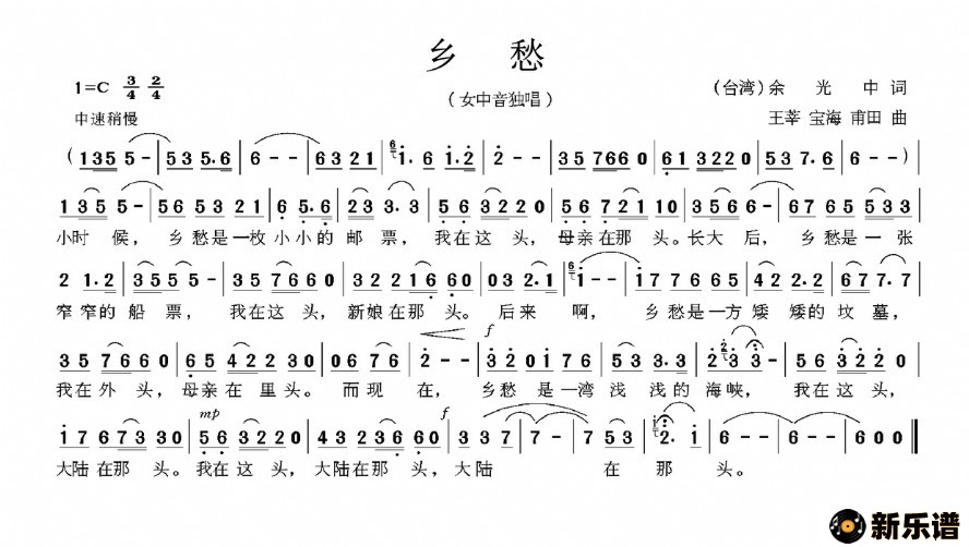 演唱的乡愁歌词,乡愁最新曲谱.