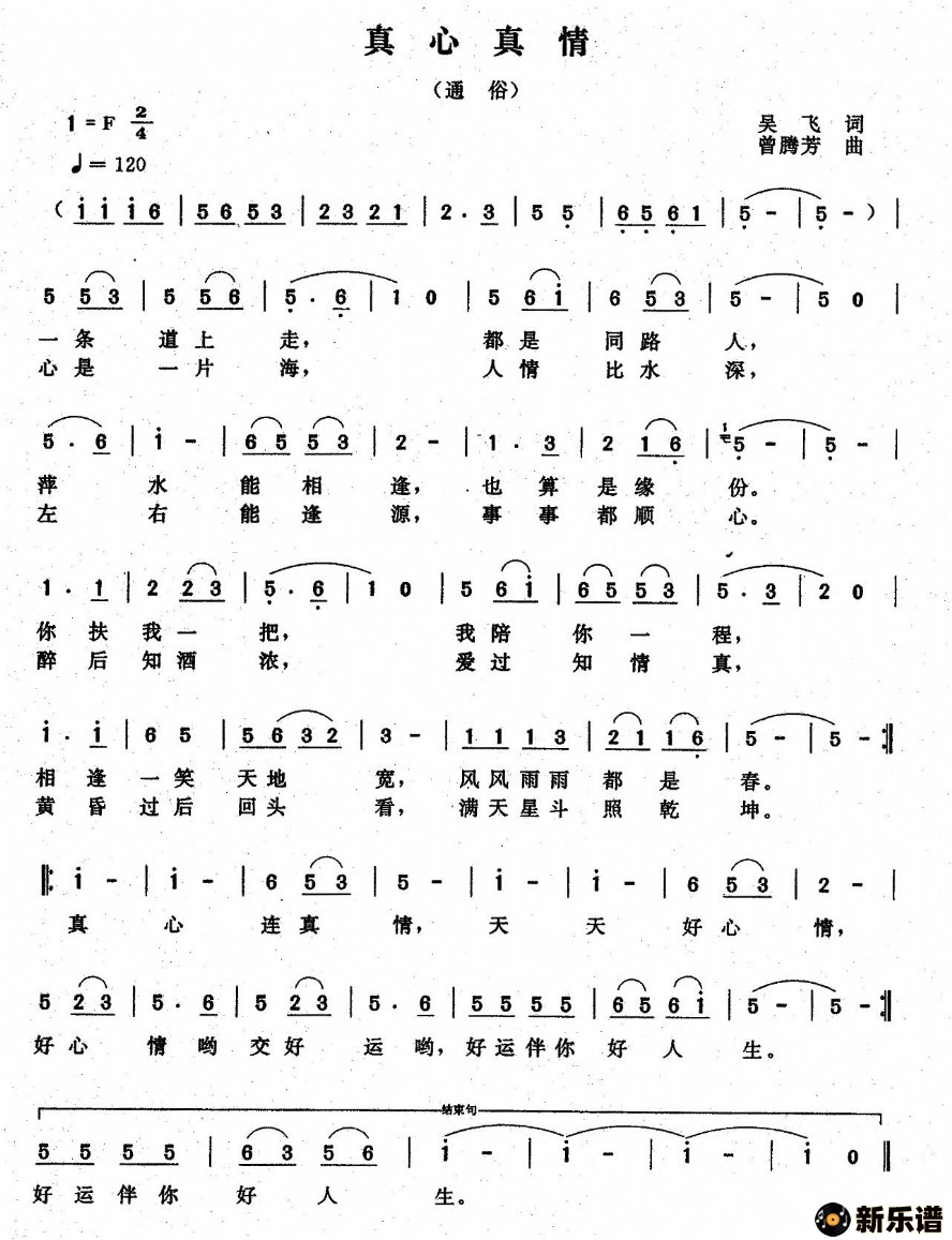 > 真心真情最新曲谱