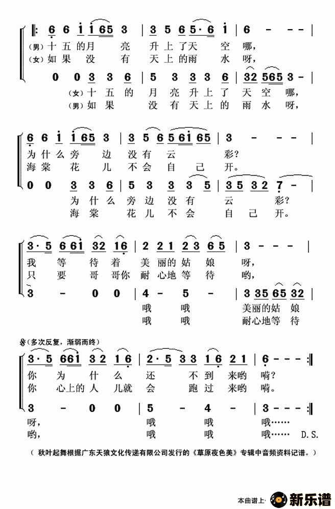 敖包相会最新曲谱