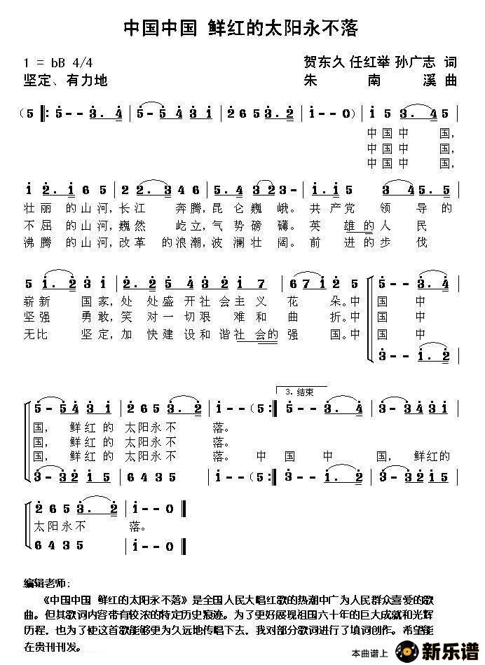 > 中国中国,鲜红的太阳永不落最新曲谱