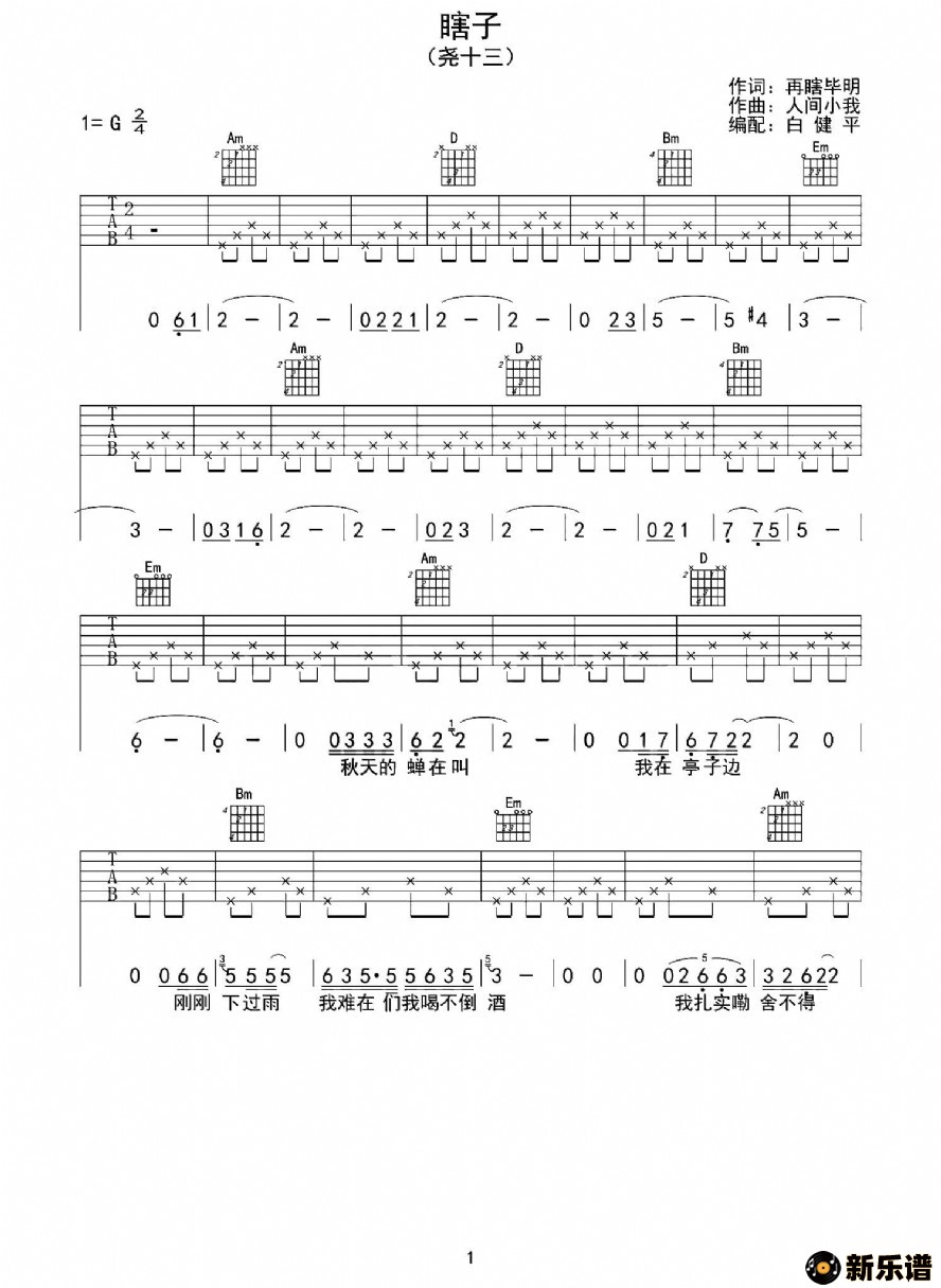 《瞎子》最新曲谱 尧十三