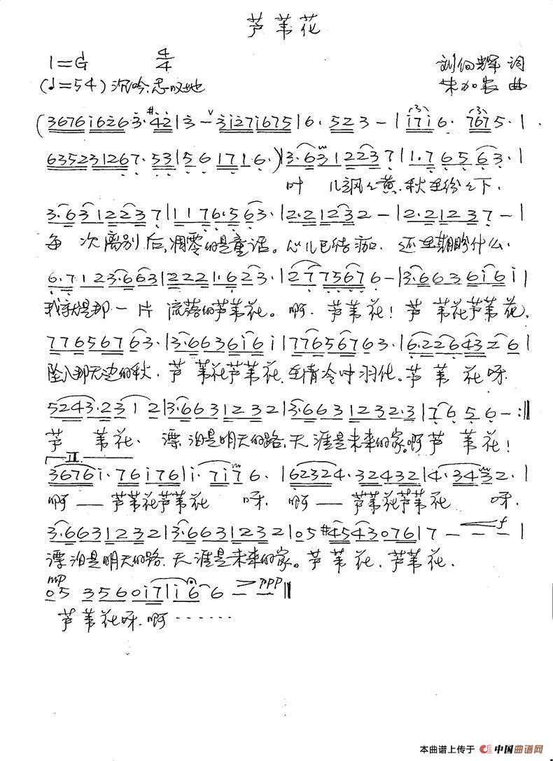 演唱的芦苇花歌词,芦苇花最新曲谱.