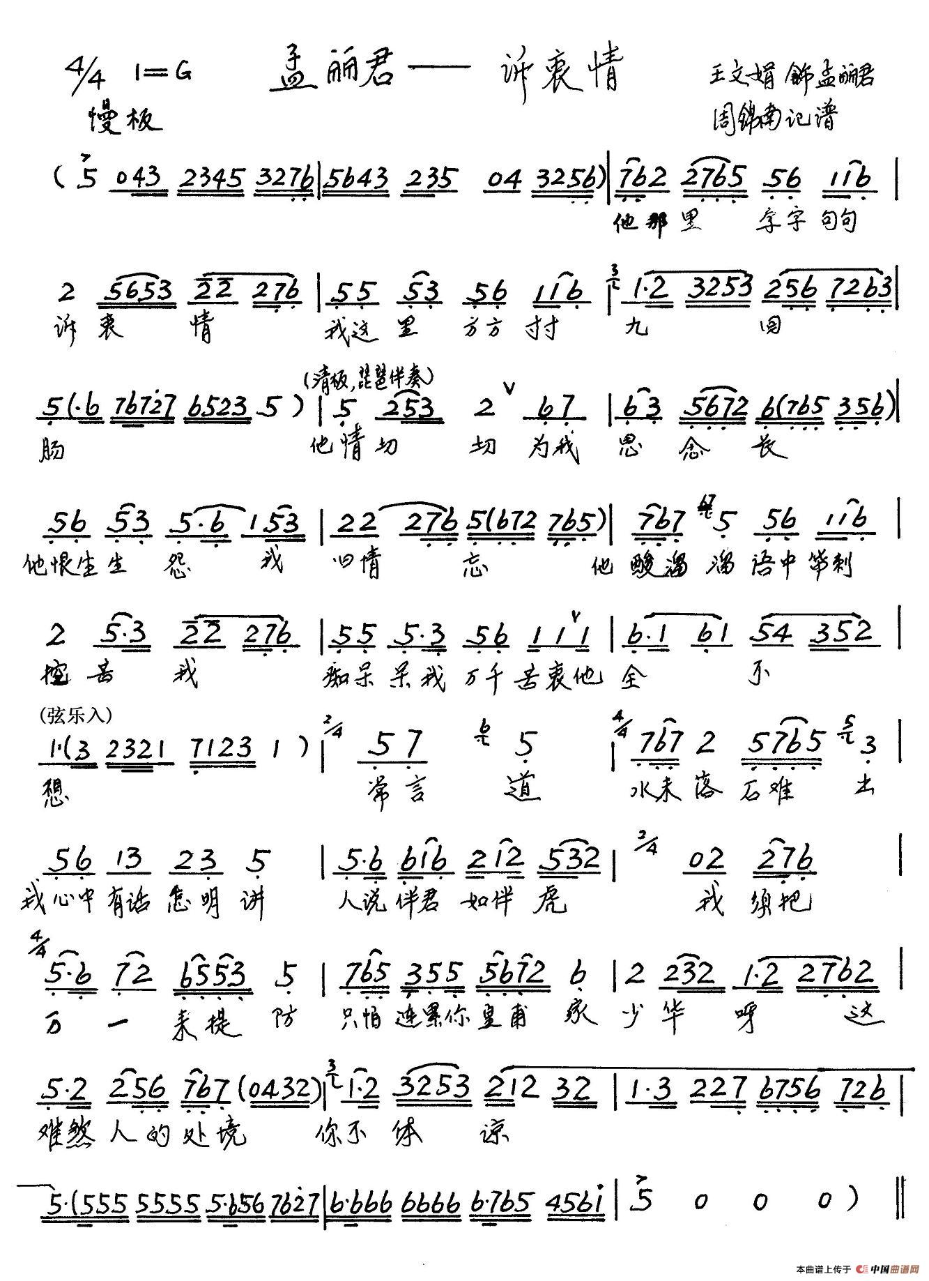 《他那里字字句句诉衷情》最新曲谱 王文娟