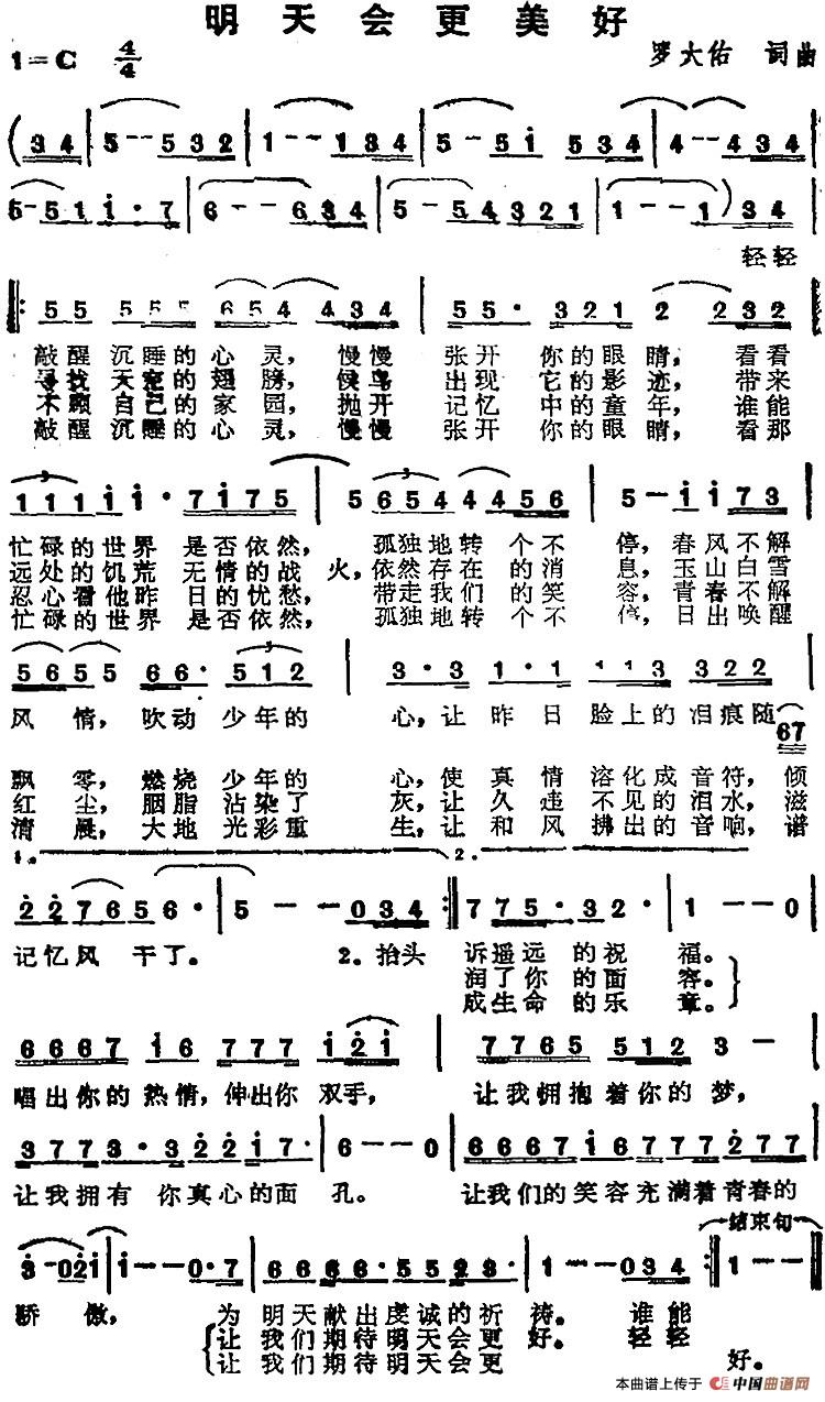 演唱的苏芮演唱金曲:明天会更美好歌词,苏芮演唱金曲:明天会更美好最新曲谱.