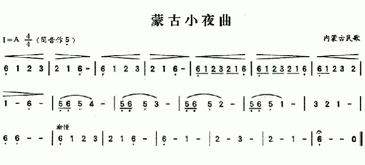 演唱的蒙古小夜曲歌词,蒙古小夜曲最新曲谱.