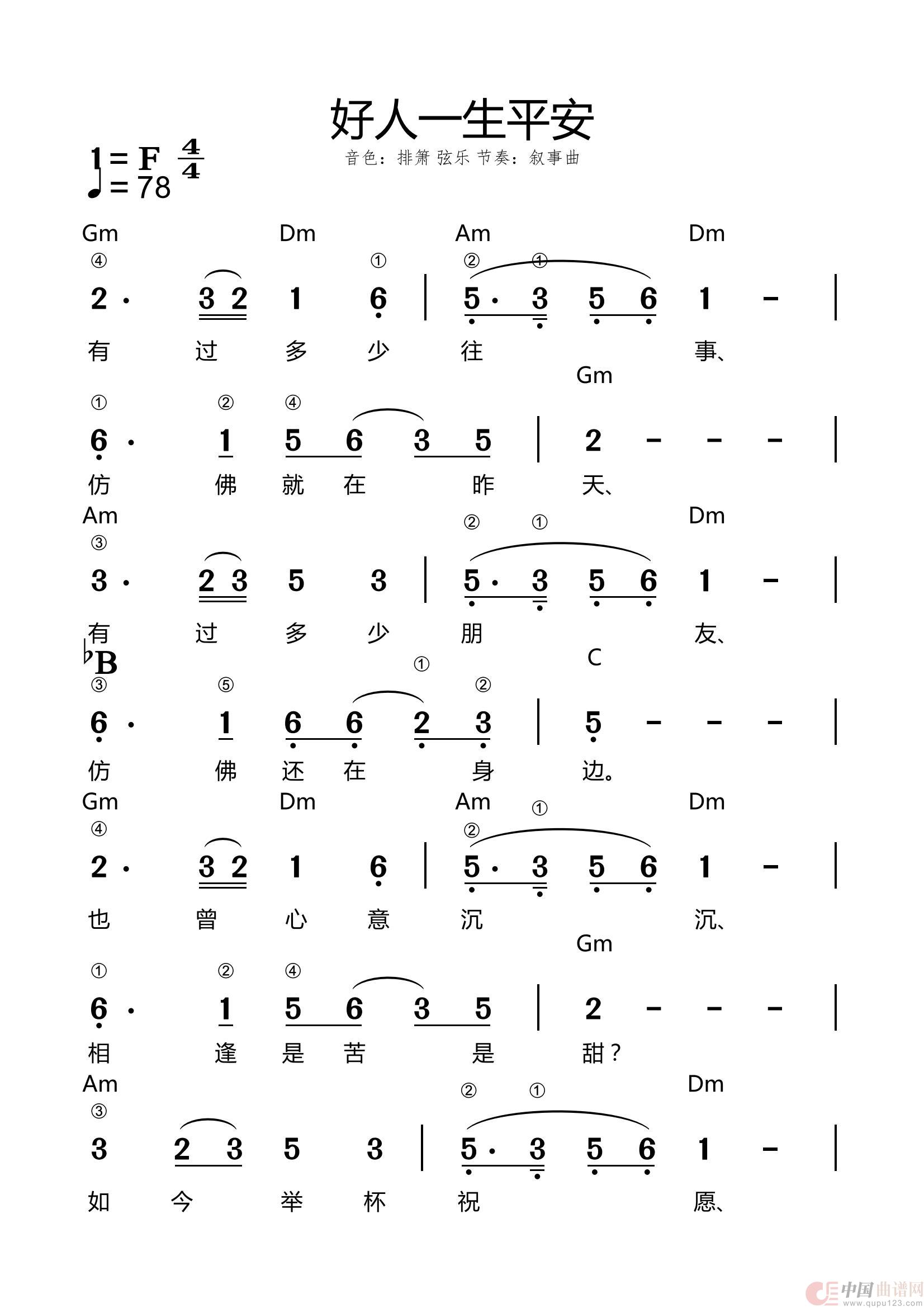 演唱的好人一生平安歌词,好人一生平安最新曲谱.