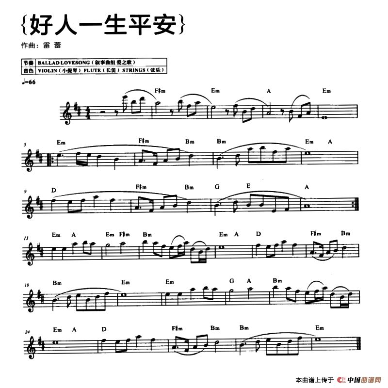 演唱的好人一生平安歌词,好人一生平安最新曲谱.
