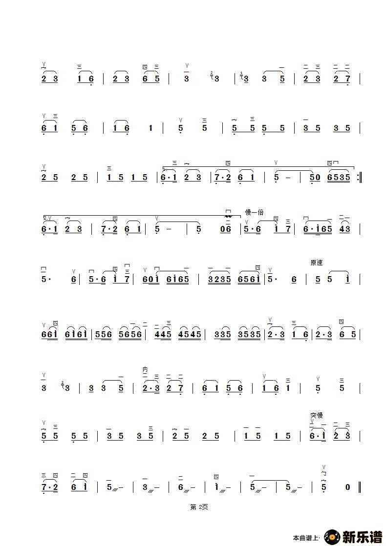 作曲:广东音乐(二胡曲谱、章祥兴制谱版)