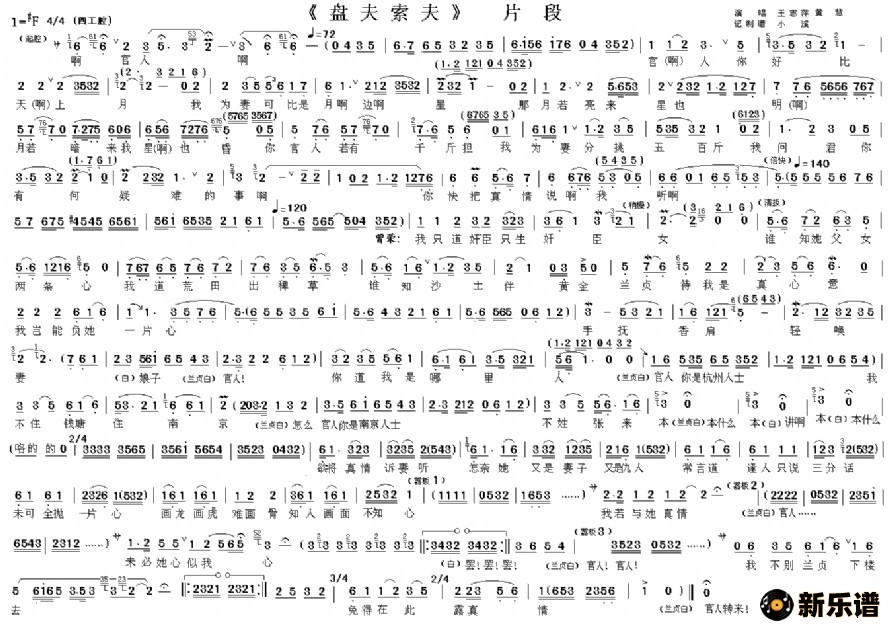 官人你好比天上月/王志萍 黄慧 盘夫索夫 相关曲谱