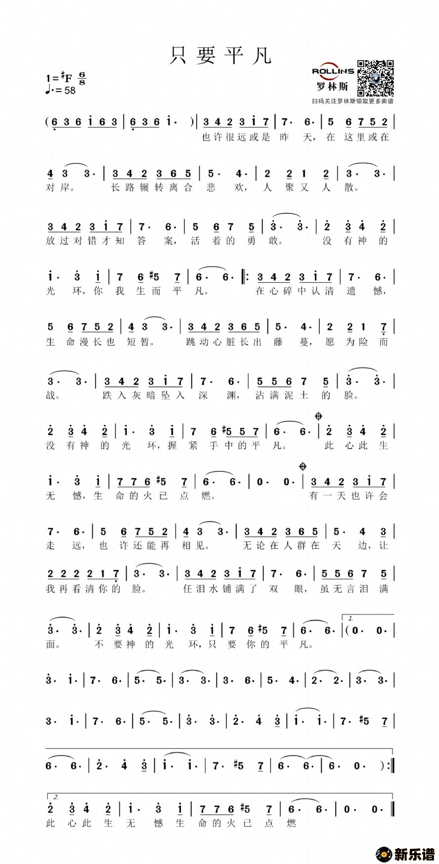 只要平凡最新曲谱