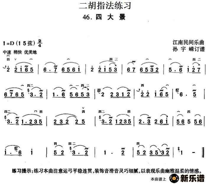 > 二胡指法练习:四大景最新曲谱