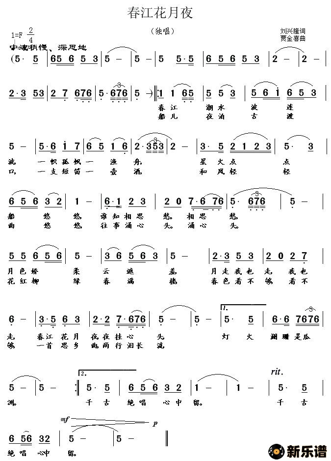演唱的春江花月夜歌词,春江花月夜最新曲谱.