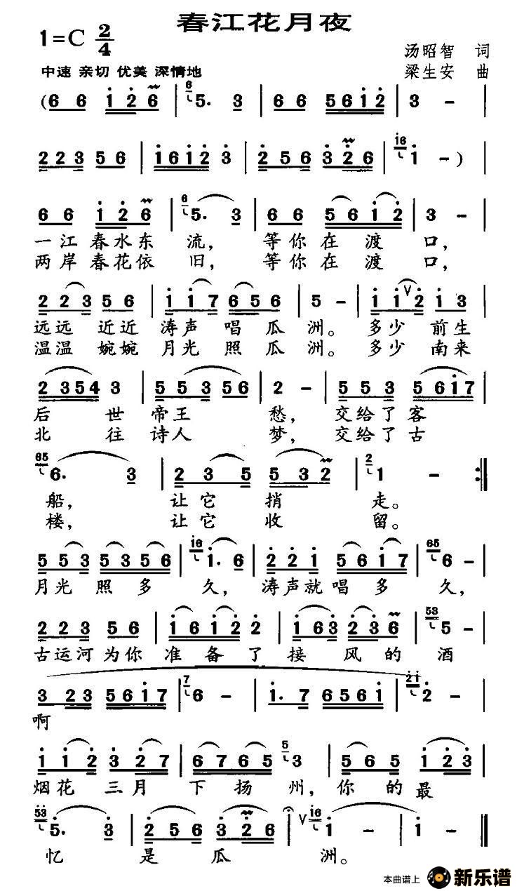 演唱的春江花月夜歌词,春江花月夜最新曲谱.