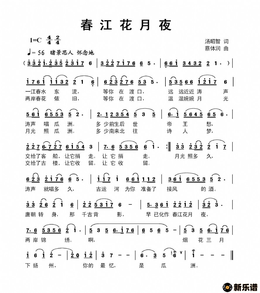 演唱的春江花月夜歌词,春江花月夜最新曲谱.
