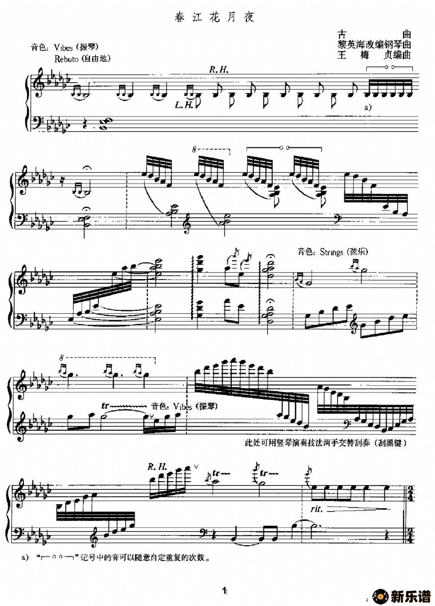 演唱的春江花月夜歌词,春江花月夜最新曲谱.