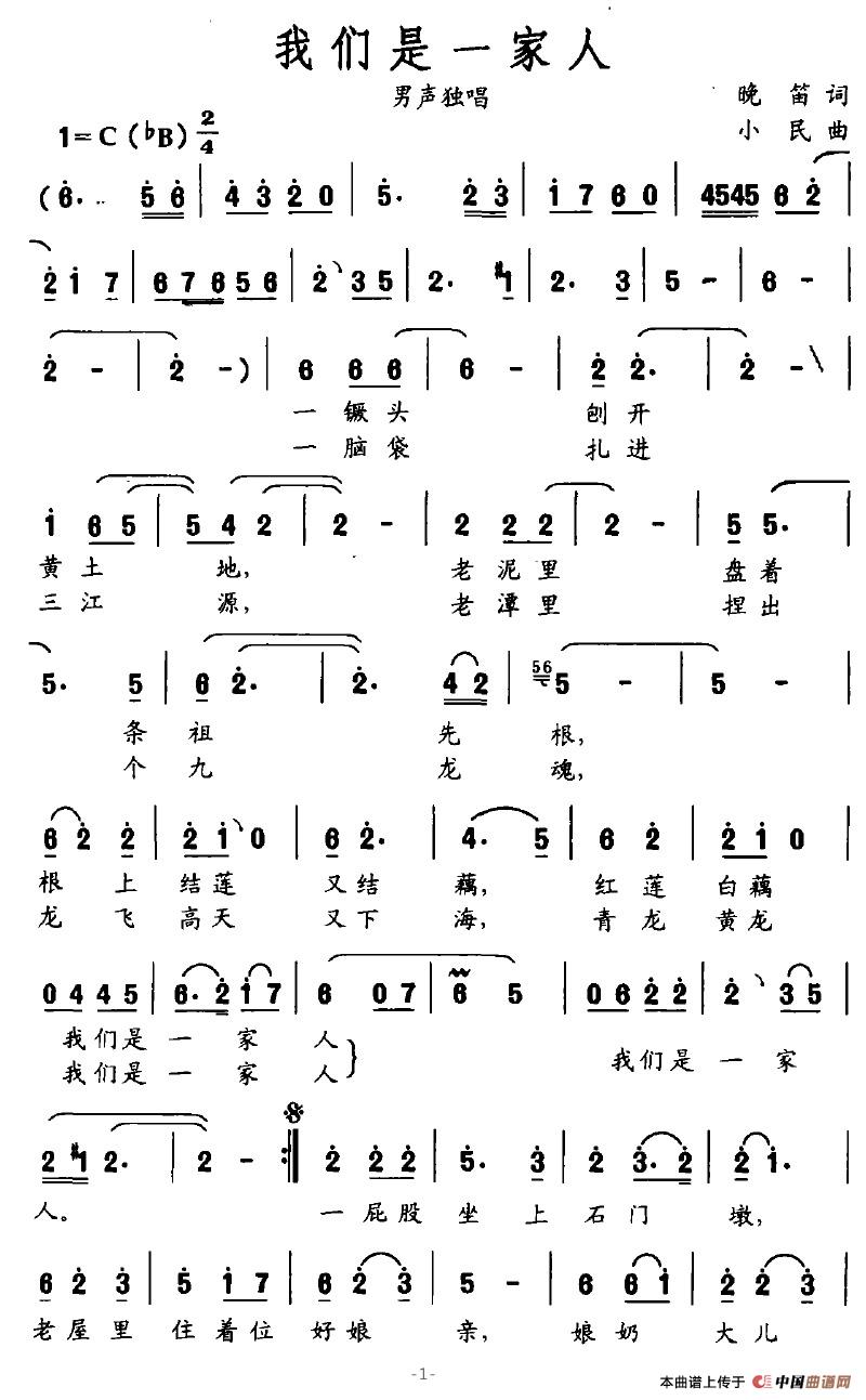 演唱的我们是一家人歌词,我们是一家人最新曲谱.