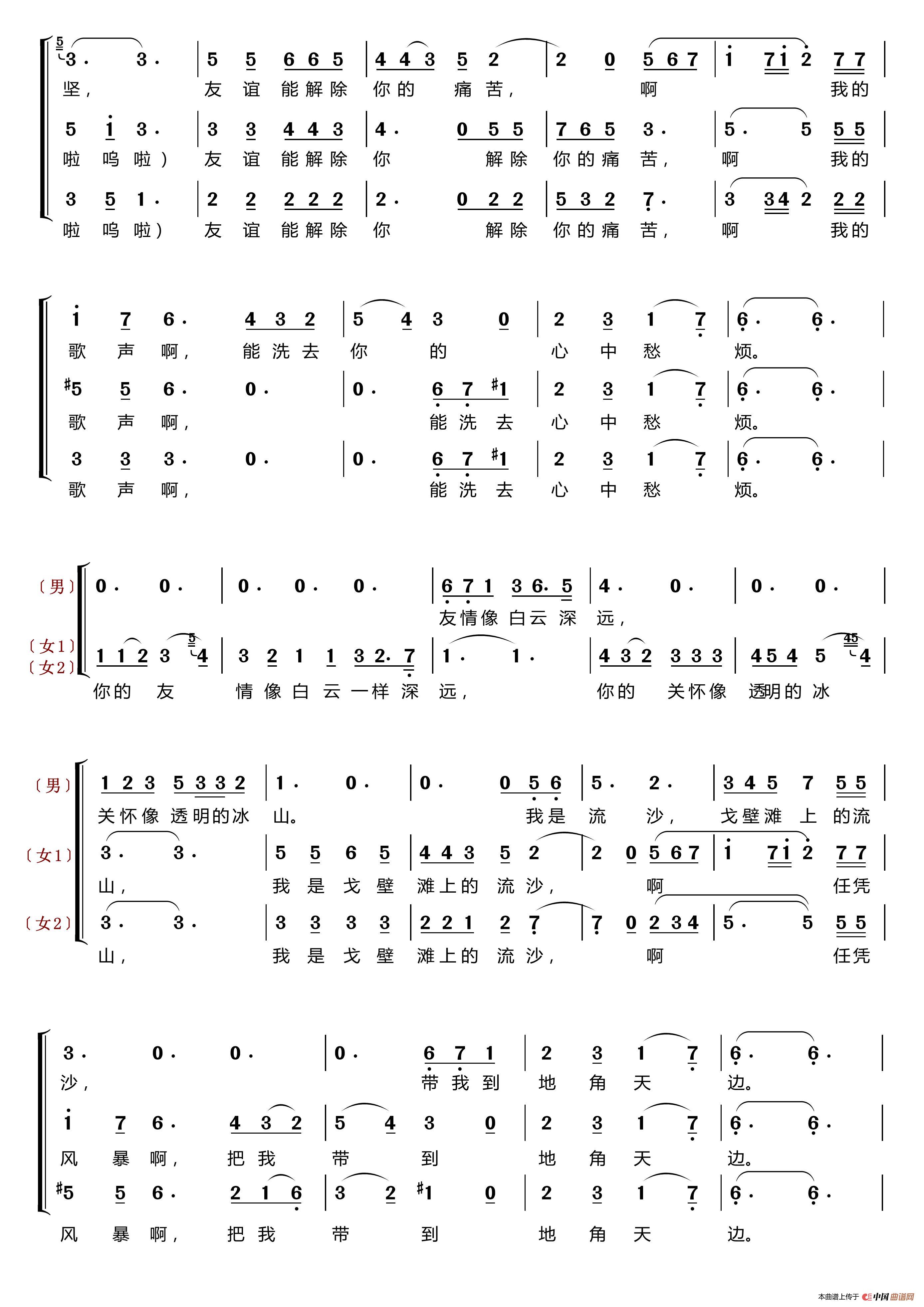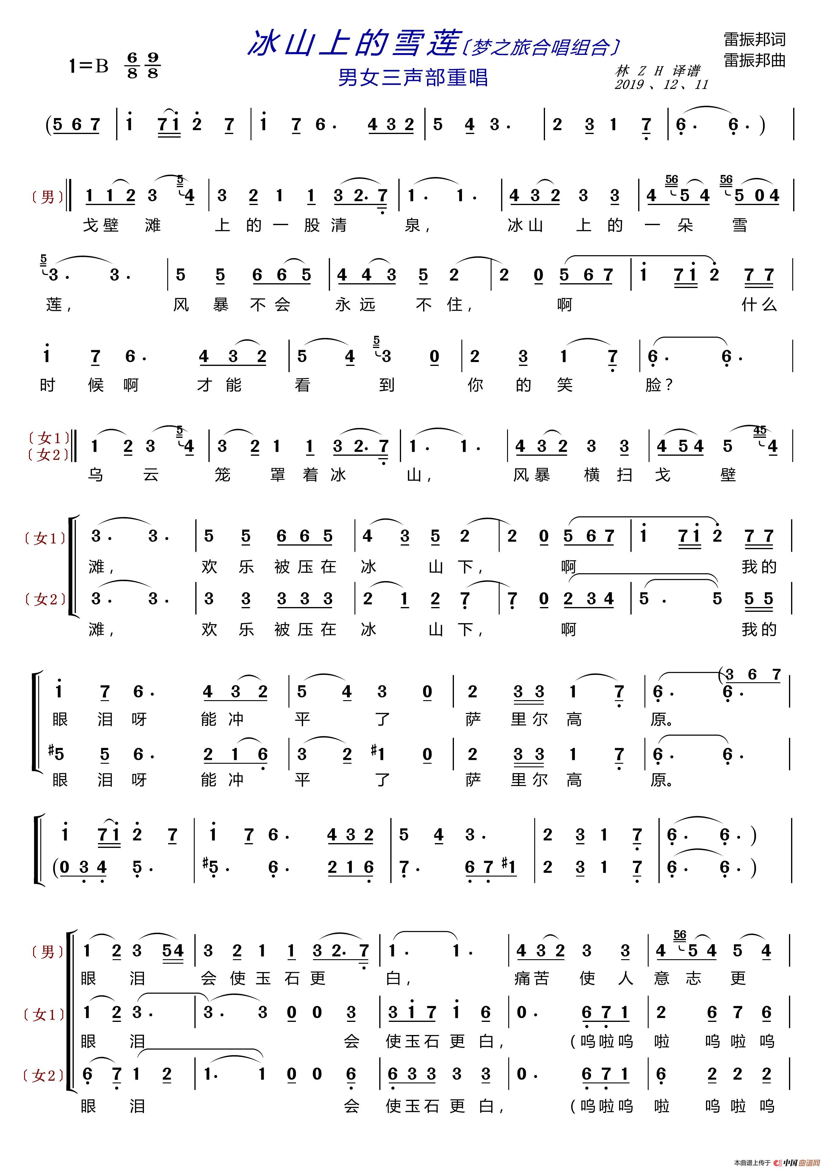 《冰山上的雪莲〔梦之旅合唱组合〕》最新曲谱 梦之旅组合